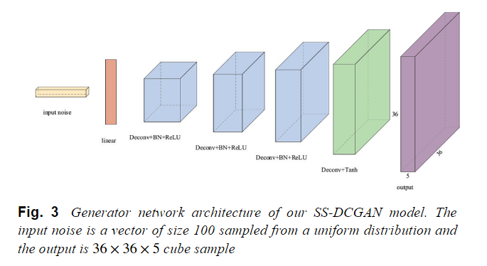 由于深度卷积网络在图像处理领域的出色处理能力和半监督学习在有限标记样本下的优势,我们将DCGAN架构和半监督GAN策略结合起来。在我们提出的方法中,我们使用一个具有分数步长卷积的深度卷积网络作为生成器,并将判别器